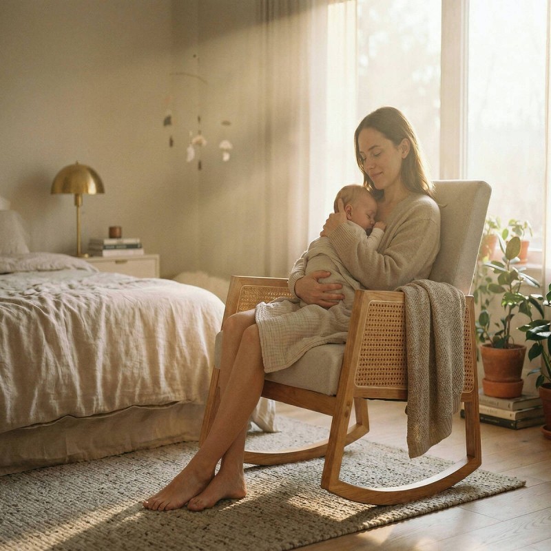 Diseñada para adaptarse a espacios reducidos, esta mecedora compacta es perfecta tanto para el salón como para el dormitorio, e incluso como sillón de lactancia gracias a su suave balanceo y respaldo acogedor y ergonómico.