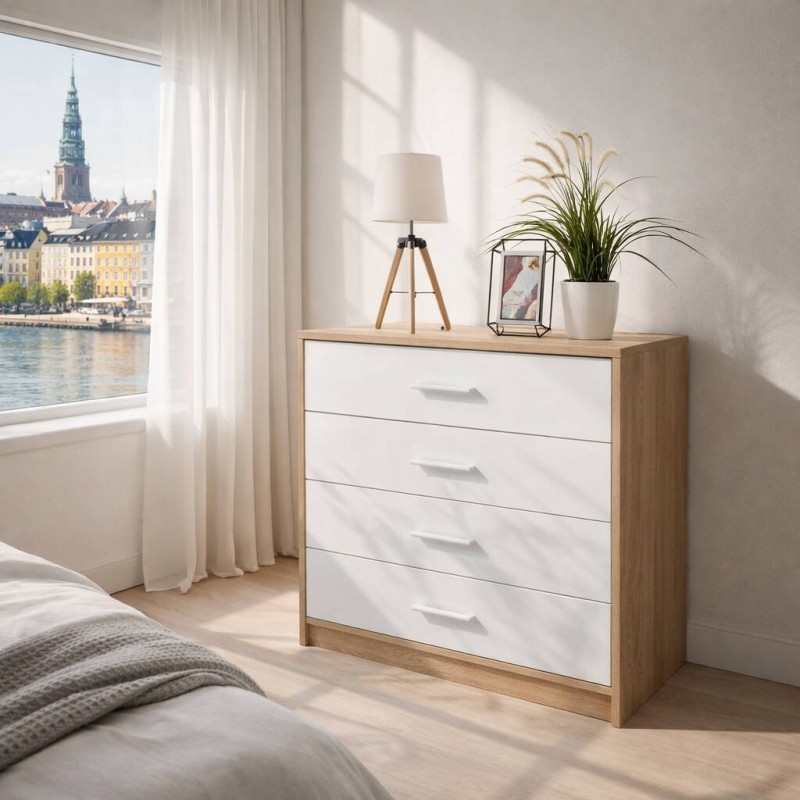 Su diseño y su tamaño hacen de KENTO una cómoda ideal para dormitorios que necesiten optimizar su espacio con el mejor gusto.