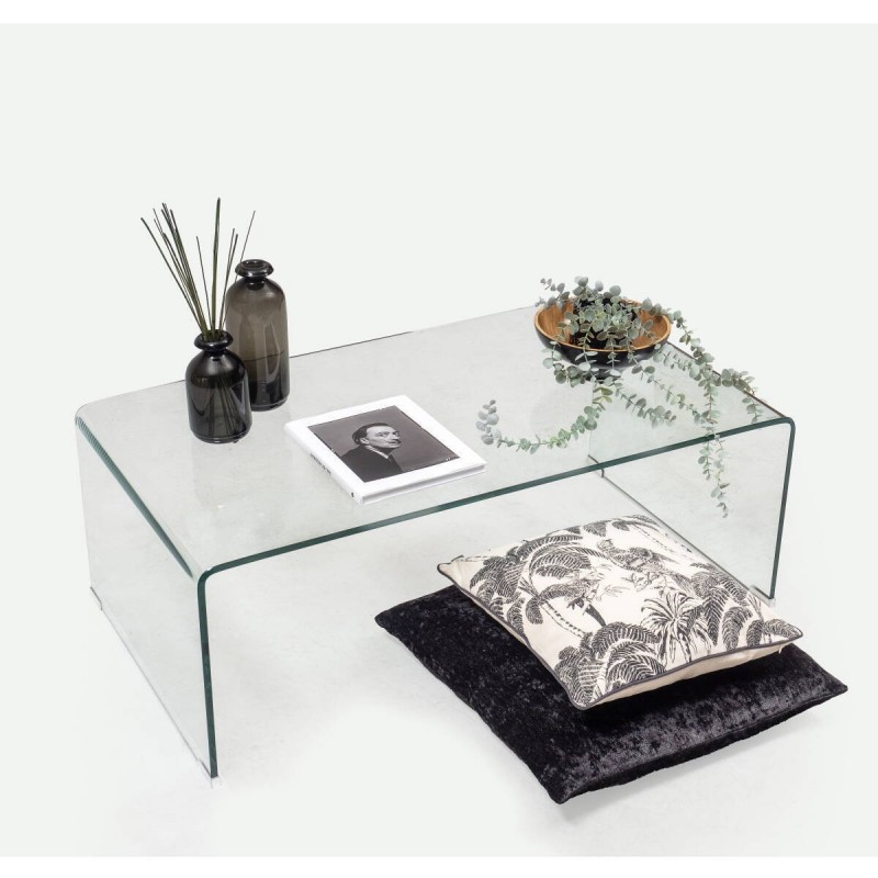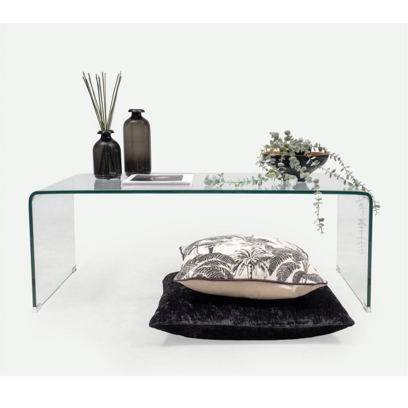 Nuestra mesa de cristal curvado de una pieza MURANO es elegancia pura.