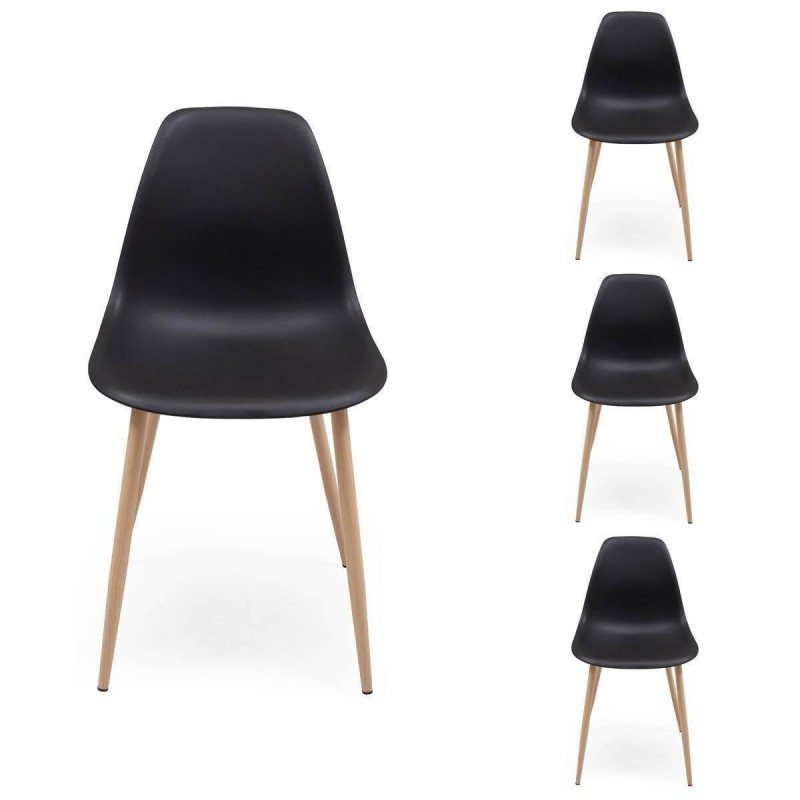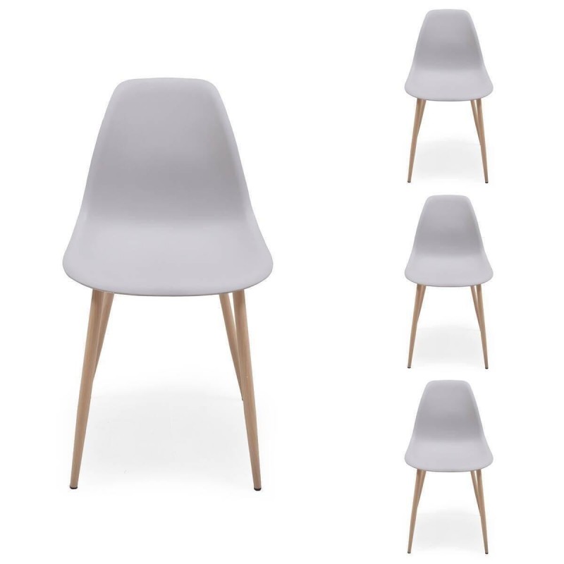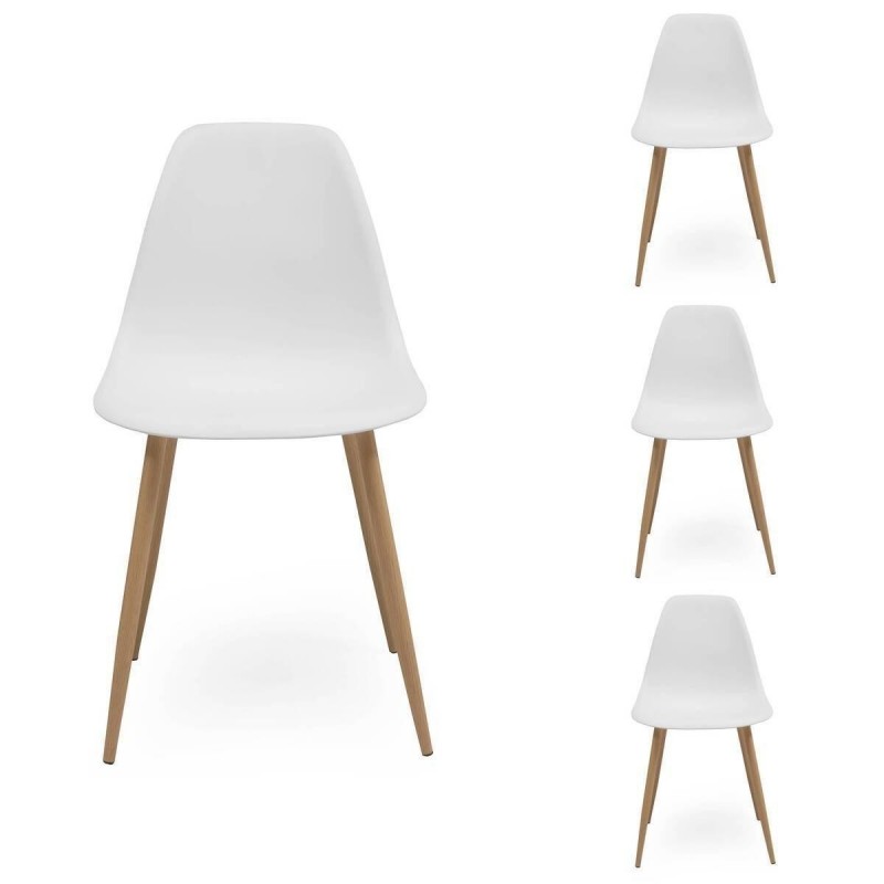 Las 4 sillas de comedor CAIRO NORDIC recuperan lo mejor del estilo nórdico y mid-century, con unas patas metálicas finas y estilizadas en color roble y un asiento de formas curvas de polipropileno en color blanco, que te invita a sentirte cómodo.