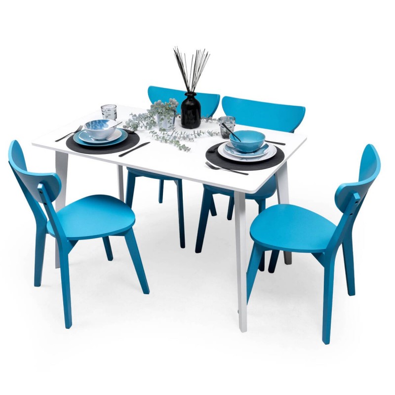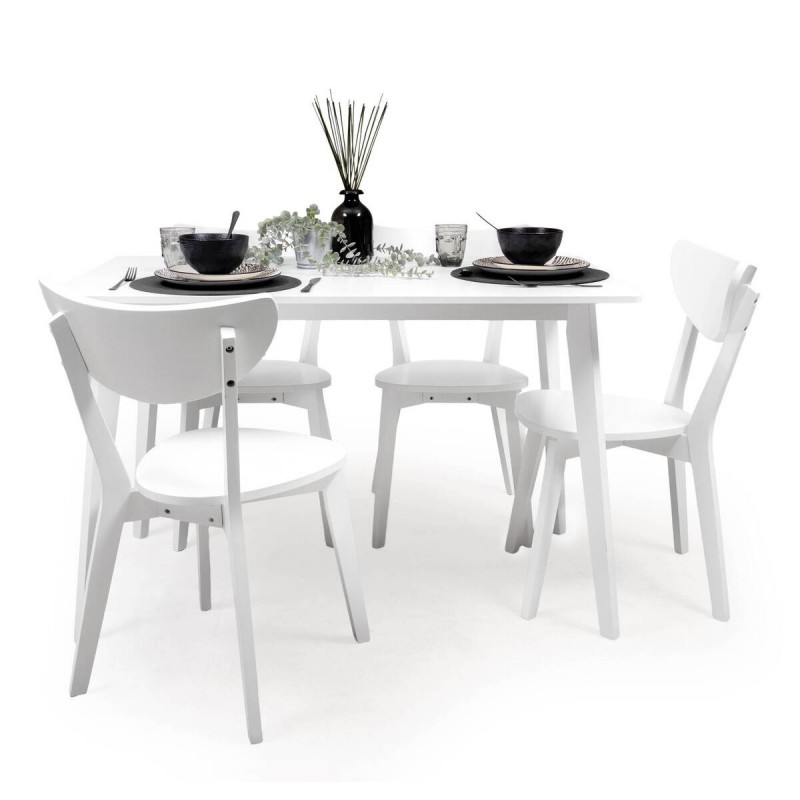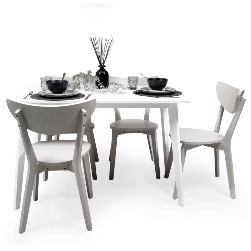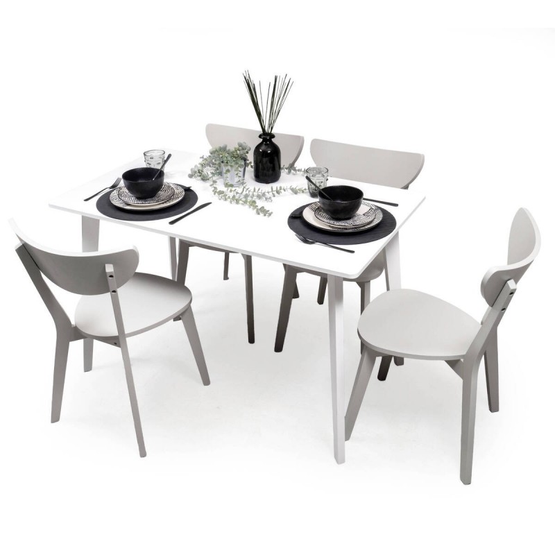 Gracias a su diseño funcional, este conjunto de mesa blanca con 4 sillas nórdicas se adapta perfectamente tanto a comedores como a cocinas amplias. Combina a la perfección con estilos modernos, nórdicos o escandinavos.