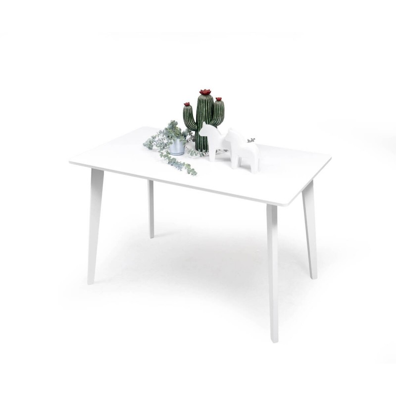 Conjunto de mesa y 4 sillas blanco estilo nórdico. Mesa rectangular de 120 × 70 cm con tablero lacado de alta resistencia y patas de madera maciza lacada. Sillas con respaldo curvo ergonómico, asiento resistente y fácil de limpiar. Diseño minimalista que encaja en cocinas pequeñas, comedores modernos o lofts luminosos. Renueva tu comedor con este conjunto blanco escandinavo que aporta luz y calma. Ideal para interiores modernos, espacios luminosos y decoración de influencia nórdica. La línea limpia y los acabados en blanco mate lo convierten en el aliado perfecto para combinar con otros elementos.