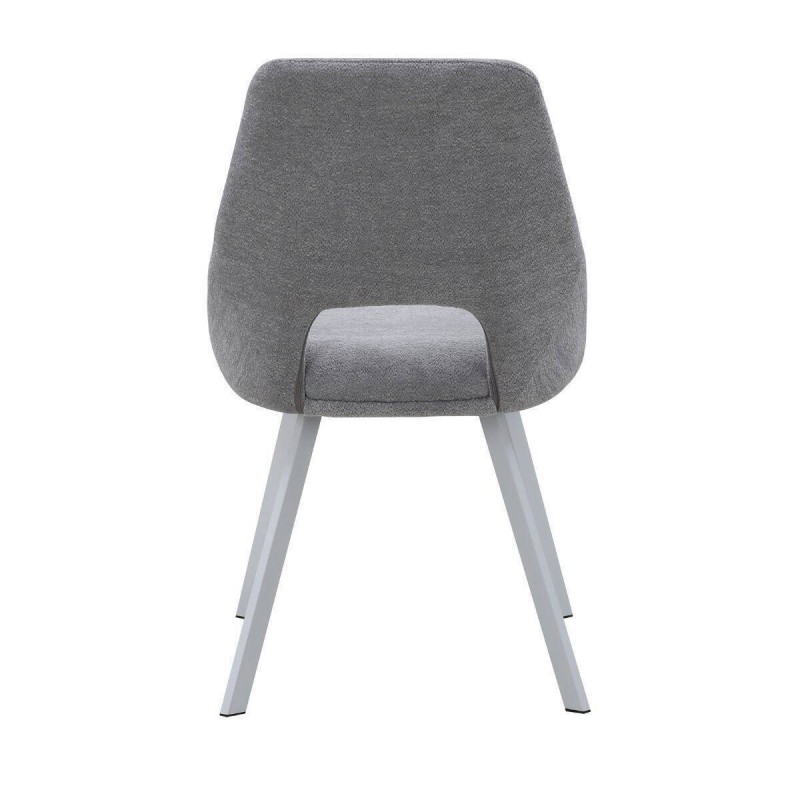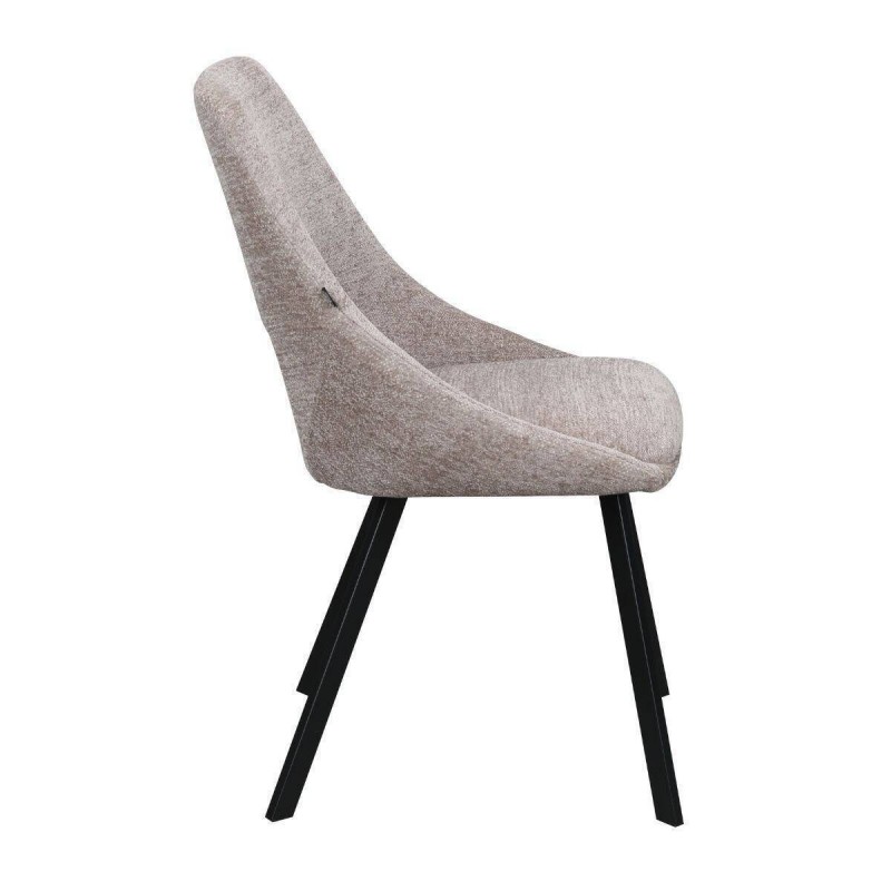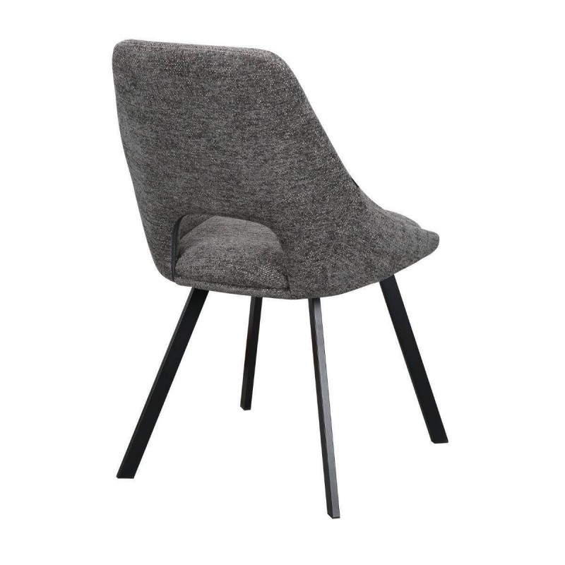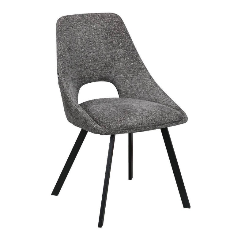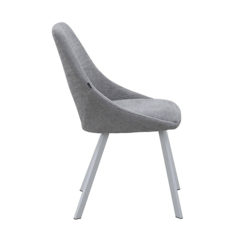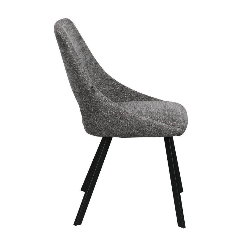 Disponible en tela beige tostado con patas metálicas negra, en tela gris claro con patas metálicas blancas y en tela gris oscuro con patas metálicas negras, lo que la convierte en una opción versátil para comedores, salones, oficinas o espacios de hostelería.