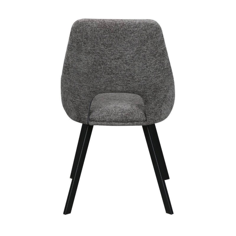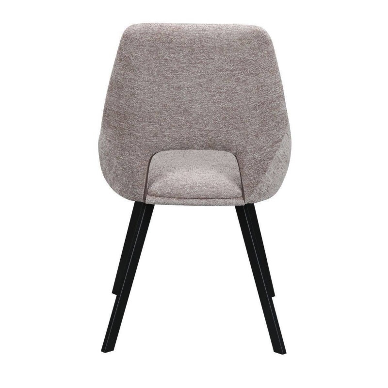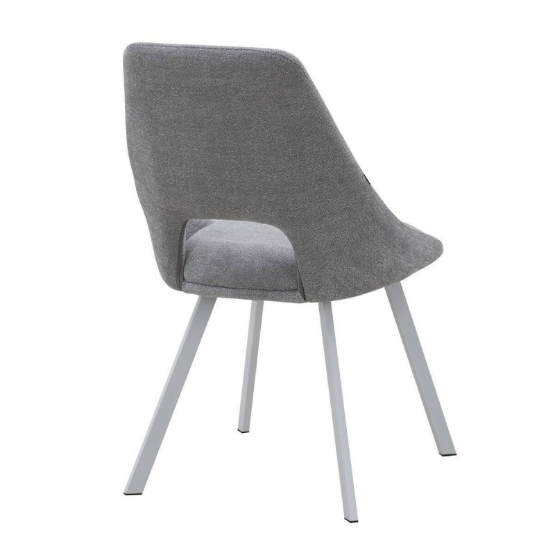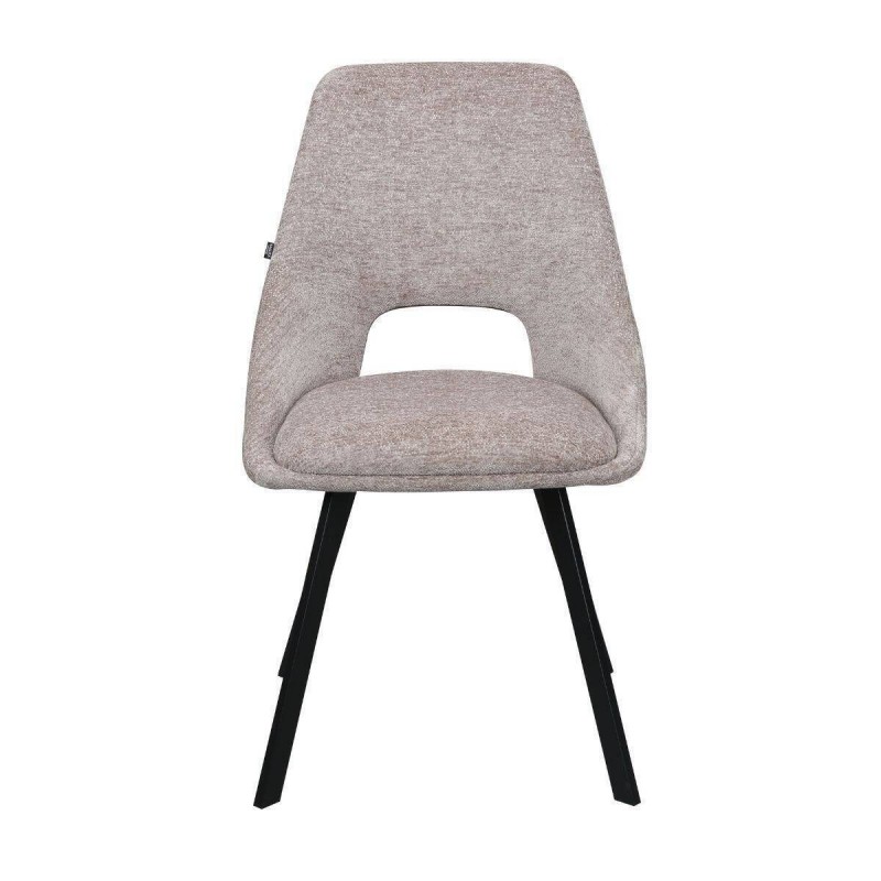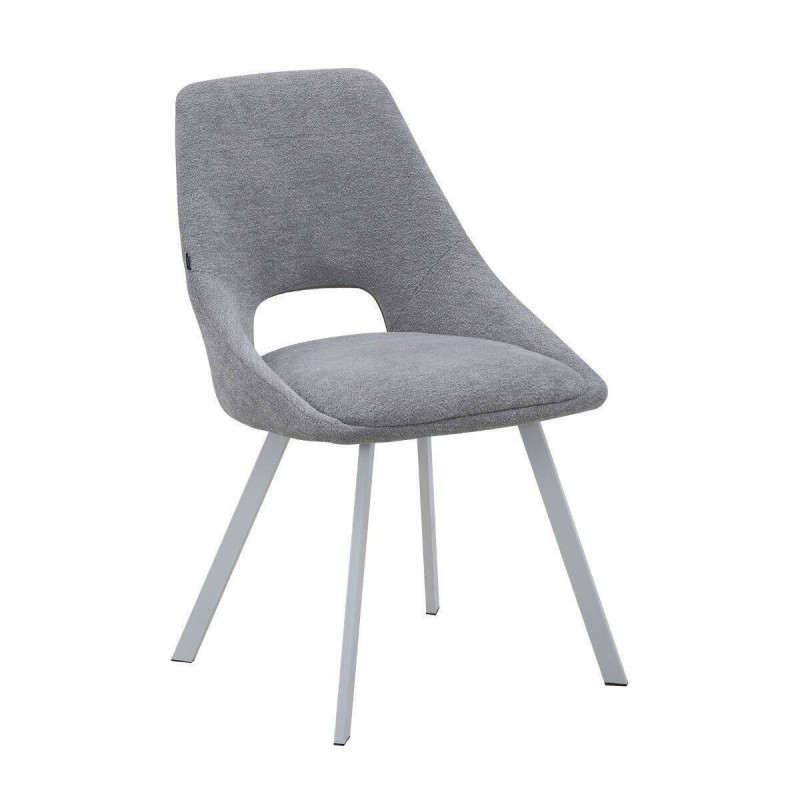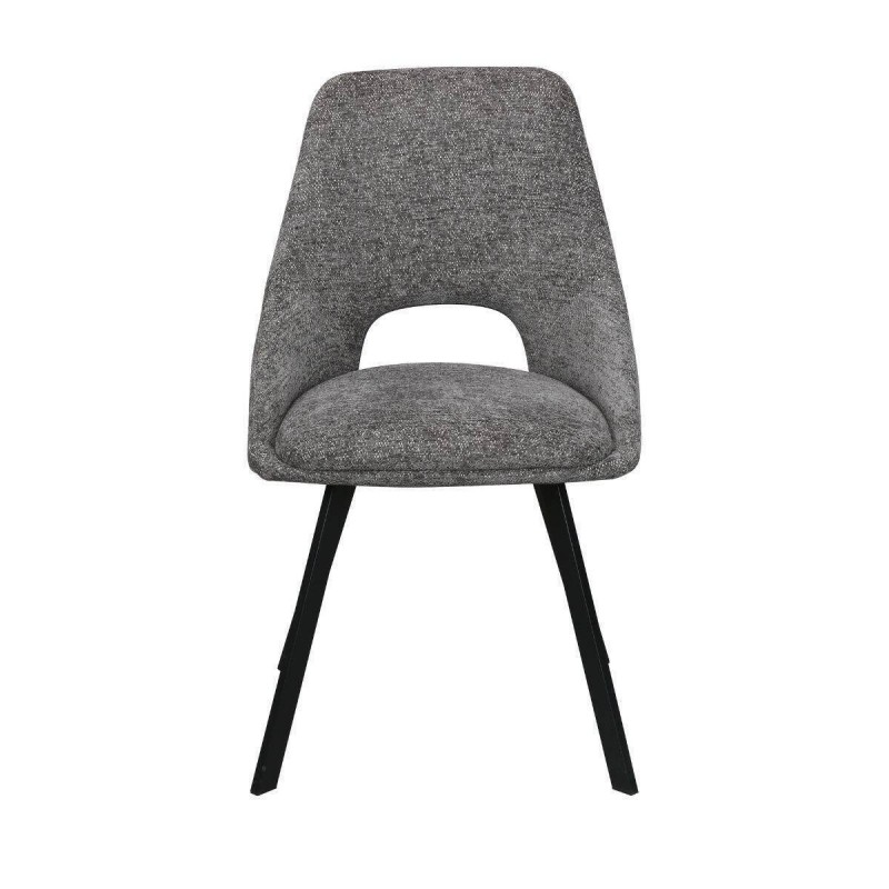 Disponible en tela beige tostado con patas metálicas negra, en tela gris claro con patas metálicas blancas y en tela gris oscuro con patas metálicas negras, lo que la convierte en una opción versátil para comedores, salones, oficinas o espacios de hostelería.